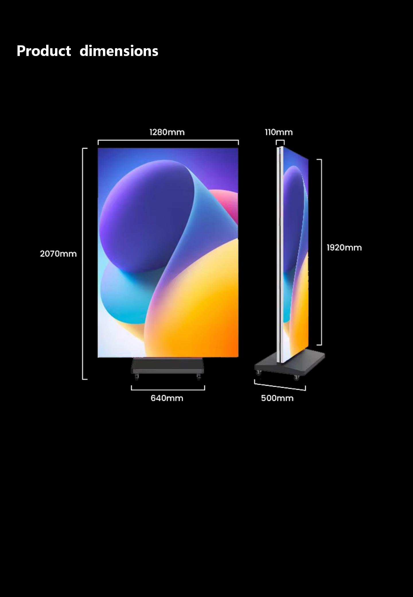 This product is rich in functions. It can be used as a dual-screen when folded, and as a single large screen when unfolded. Moreover, it supports multi-screen splicing for extended display. With a pixel pitch of P2.5, it delivers excellent display performance. (Customization of different pixel pitches and replacement of GOB modules are available.)