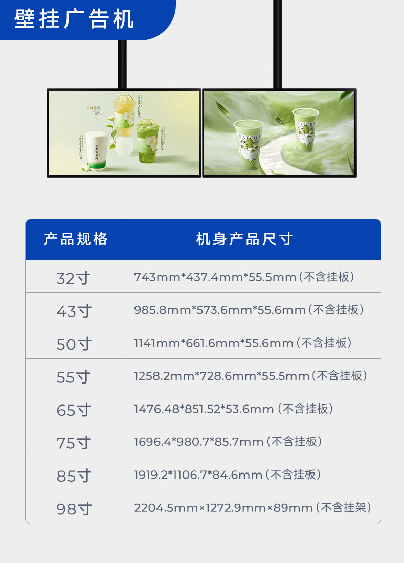 32-98英寸液晶壁挂/吊挂广告机智能数字标牌